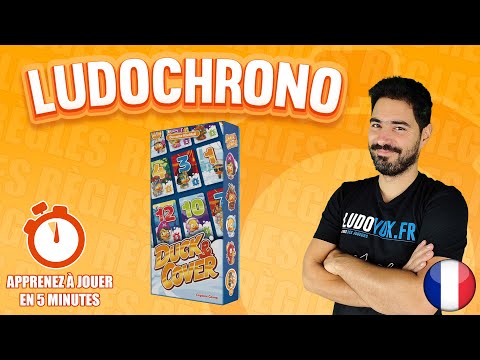 Dans Duck & Cover, chaque joueur reçoit une série de 12 cartes canard qu’il dispose en grille. Les canards, illustrés avec humour et répartis en 7 thématiques différentes, portent chacun une valeur d’éclaboussures de 0 à 5.