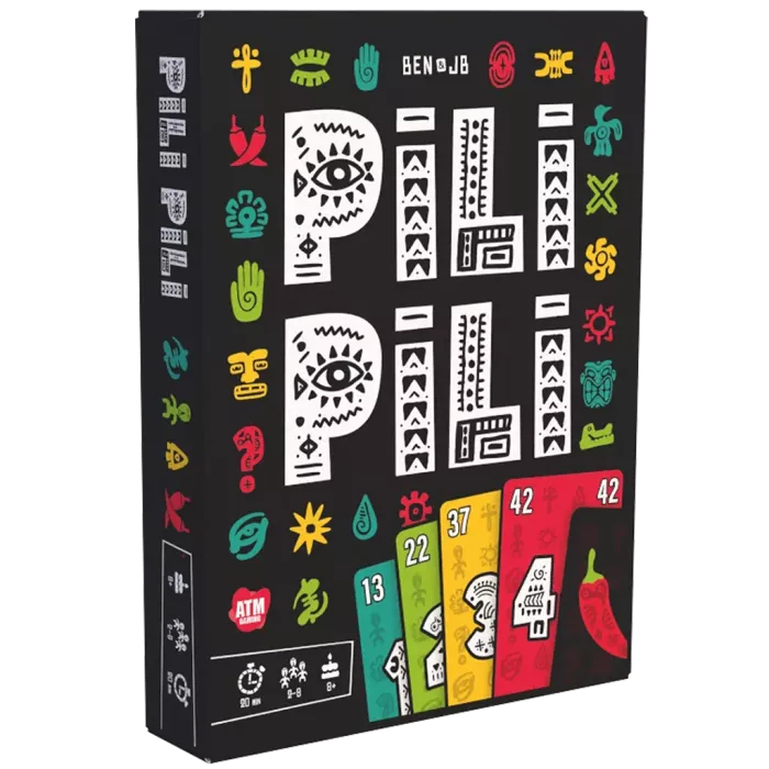 Dans Pili Pili, vous pariez sur le nombre de plis que vous pensez remporter… mais attention aux missions spéciales qui viennent bouleverser les règles à chaque tour : parier à l’aveugle, échanger des cartes, éviter des pièges… Les surprises ne manqueront pas !